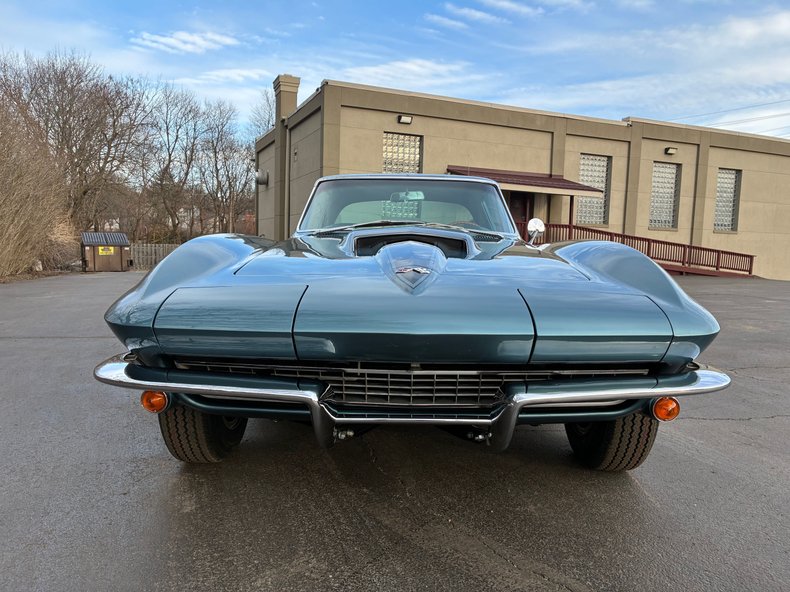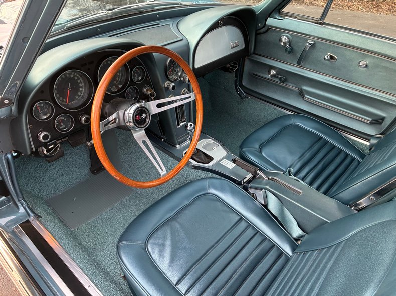 The Corvette has been restored in its original Lyndale Blue exterior paired with a teal interior, a combination that highlights the styling character of the late C2 generation. Supporting its authenticity, the car is accompanied by original documentation, including the factory tank sticker and Protect-O-Plate, both of which help verify its production details and configuration.