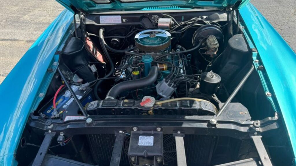 Power comes from AMC’s 290-cubic-inch V8, paired with an automatic transmission. Though smaller than the big-block options offered at the time, the 290 still provided plenty of punch for drivers looking for a balance between performance and daily usability. This particular Javelin also features Edelbrock chrome valve pan covers, adding a touch of aftermarket flair to the otherwise original engine bay.