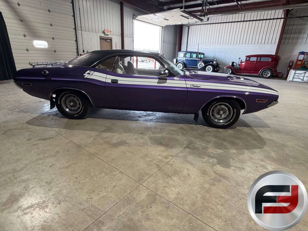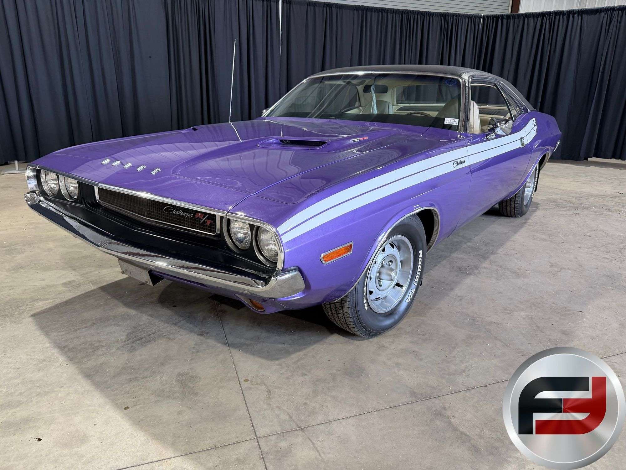 One of the standout features is its Plum Crazy purple exterior, a high-impact factory color that remains closely associated with Dodge’s muscle car legacy. The Challenger is noted as an original Plum Crazy car, further supported by the presence of a matching fender tag and its original broadcast sheet, both of which are key indicators for collectors seeking authenticity.