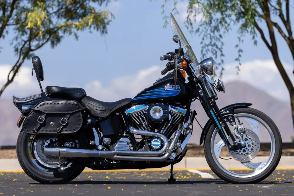 A 1995 Harley-Davidson Softail Bad Boy Limited Edition is gaining momentum among bidders as it approaches the final days of a no-reserve sale, with current offers reaching $5,000 and five days remaining. The motorcycle, held by its current owner since 1997, presents a blend of factory design and aftermarket customization developed over decades of ownership.