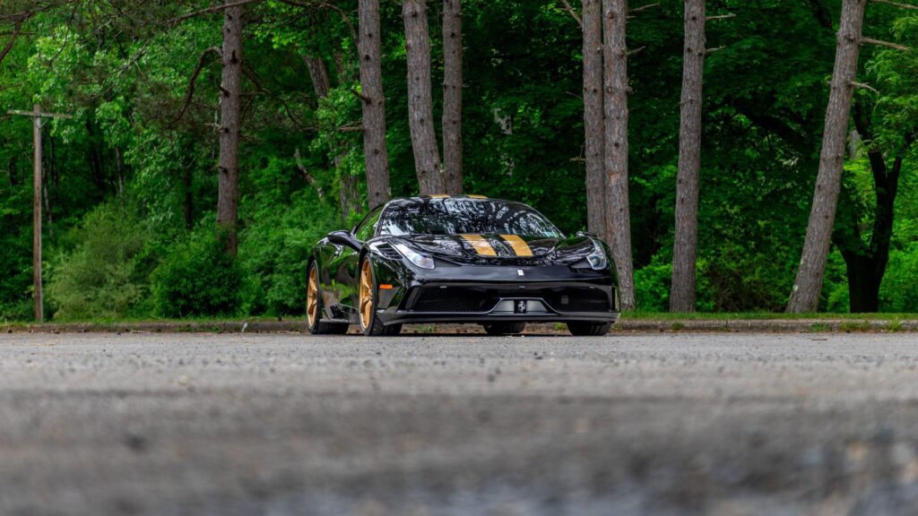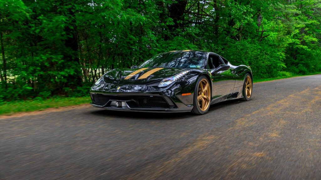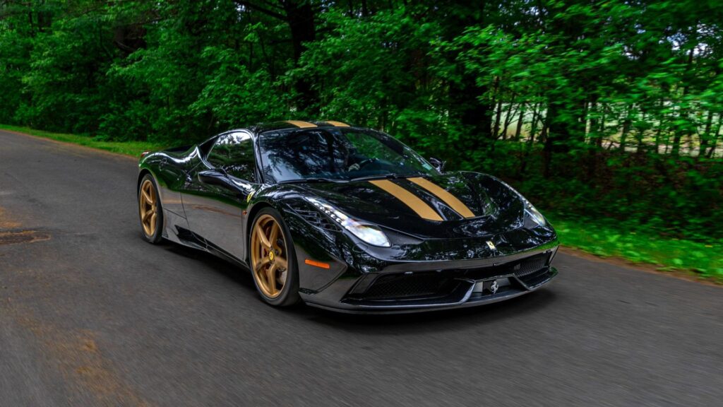 A 2015 Ferrari 458 Speciale showing just 3,912 miles will cross the block at the upcoming Saratoga Motorcar Auction, offering bidders a chance to acquire one of Maranello’s most revered modern supercars, and with No Reserve. Finished in an original black-and-gold exterior with a black suede interior accented by white stitching, this Speciale stands out for its striking specification and low mileage.