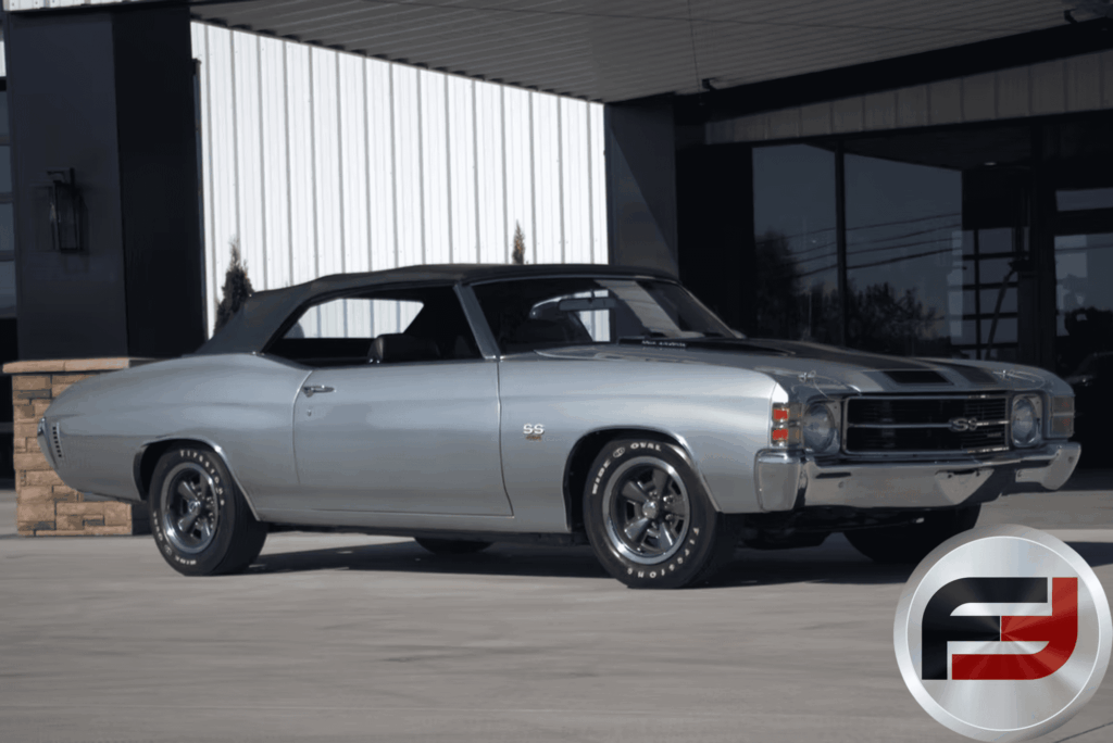 The first highlight is a 1971 Chevelle LS5 that the owner states retains its matching-numbers drivetrain. Finished in Nevada Silver with black accents, this car carries Chevrolet’s 454-ci, 365-hp LS5 big-block paired to an M22 Rockcrusher Muncie 4-speed and a Hurst shifter. It’s equipped with a Quadrajet carburetor, points ignition, OE manifolds with dual exhaust, and a cowl induction air cleaner. A 12-bolt Positraction rear end and SS wheels wrapped in F60-15 Wide Ovals complete the drivetrain setup.