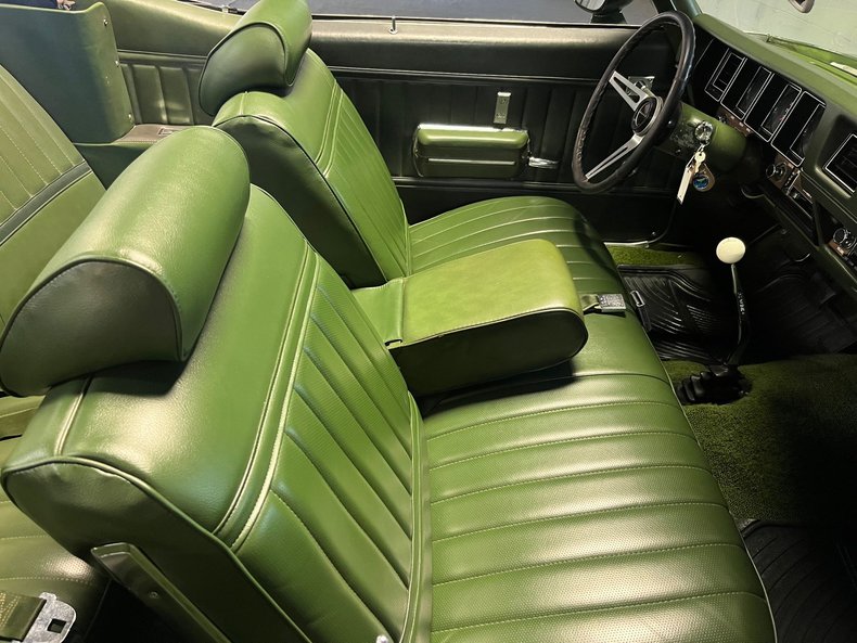 The car is equipped with a 350 cubic-inch V8 engine, a powertrain that reflects the era’s emphasis on balanced performance and drivability. Paired with a four-speed manual transmission, the setup appeals to enthusiasts who value a more hands-on driving experience, reinforcing the vehicle’s identity as a driver-focused classic.