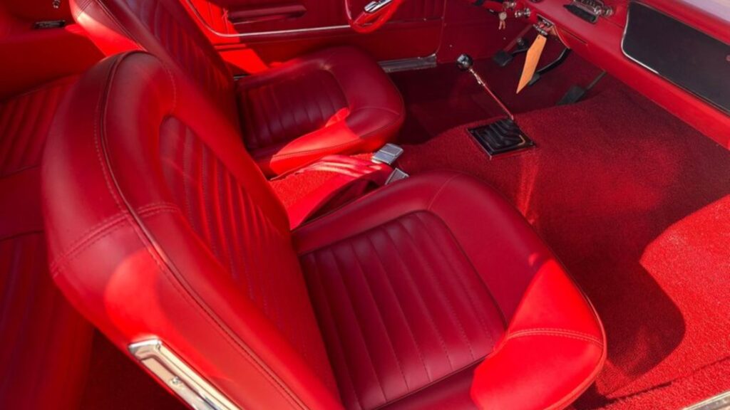 This example is a 1964½-era Mustang, built during the model’s earliest production period, and configured as a convertible. Power is routed through a four-speed manual transmission, reinforcing its driver-focused character. An 8,000-rpm Rally-Pac tachometer and gauge cluster further reflect its high-performance intent, while style steel wheels fitted with redline tires maintain the car’s period-correct appearance.