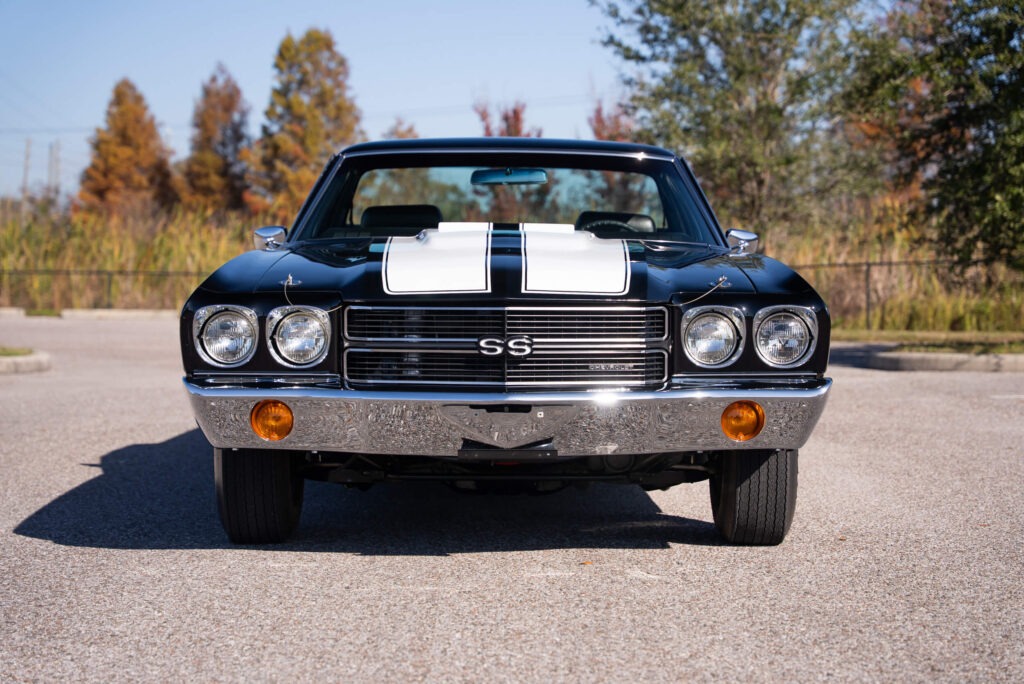 Under the hood is a 396-cubic-inch V8 engine rated at 350 horsepower, paired with an automatic transmission. The drivetrain reflects the type of performance configuration that helped define Chevrolet’s muscle car lineup in 1970. Equipment includes factory air conditioning, power steering, power brakes, power windows, a tilt steering wheel, and bucket seats with a center console.
