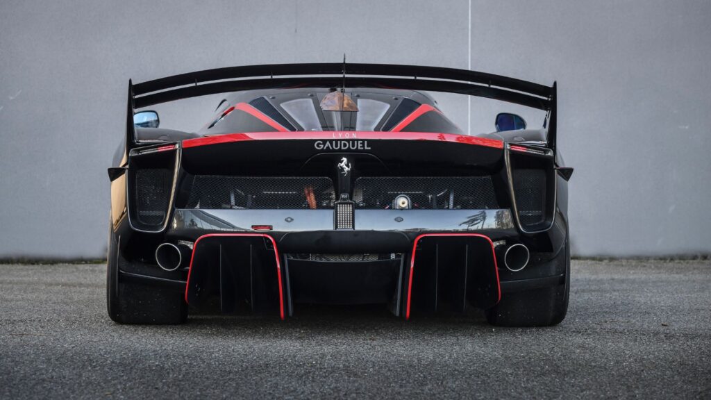 Power comes from a 6.3-liter naturally aspirated V12 paired with Ferrari’s HY-KERS hybrid system. The combined output is approximately 1,050 horsepower, delivered through a seven-speed dual-clutch transmission. The hybrid system was engineered for performance rather than efficiency, providing immediate torque delivery, regenerative braking, and adjustable energy deployment tailored for circuit driving. Braking is handled by carbon-ceramic discs, while independent suspension with adaptive dampers manages the car’s extreme aerodynamic loads.
