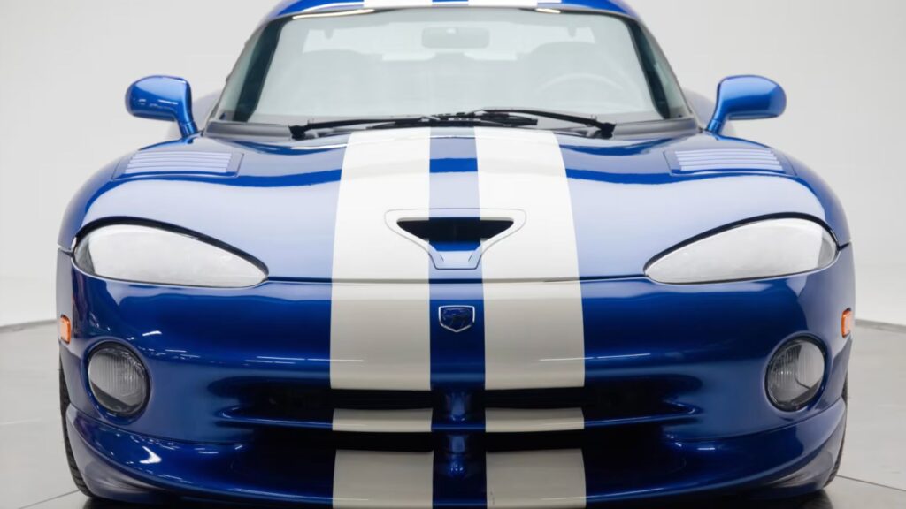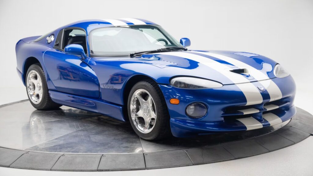 A rare, ultra-low mileage example of Dodge’s iconic supercar will cross the block during Mecum’s Indy Fall Special on October 4. The 1997 Dodge Viper GTS Coupe, finished in the unmistakable Viper Blue with dual white stripes, shows just 2,941 miles on its odometer, making it one of the most pristine survivors of its era.
