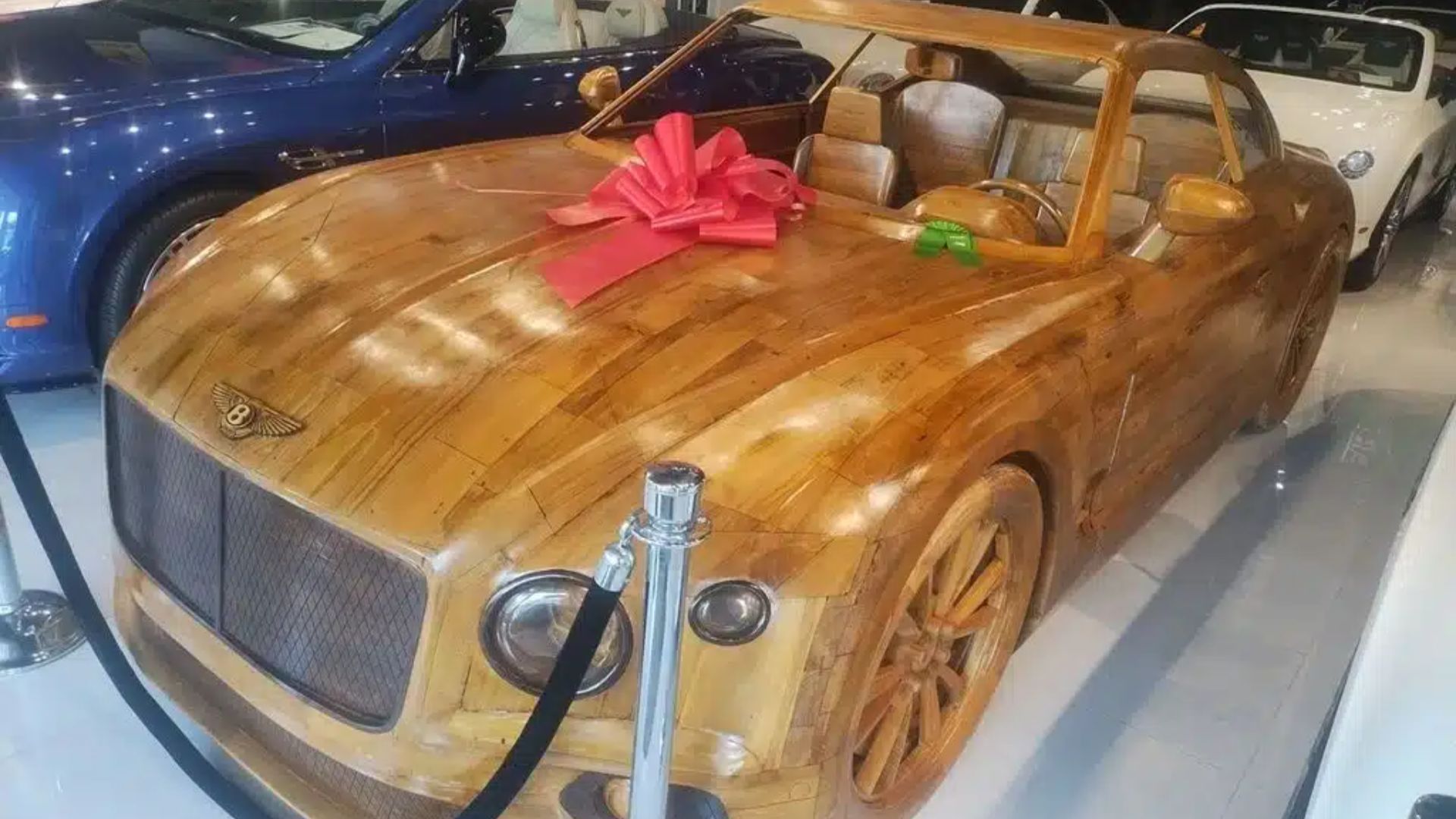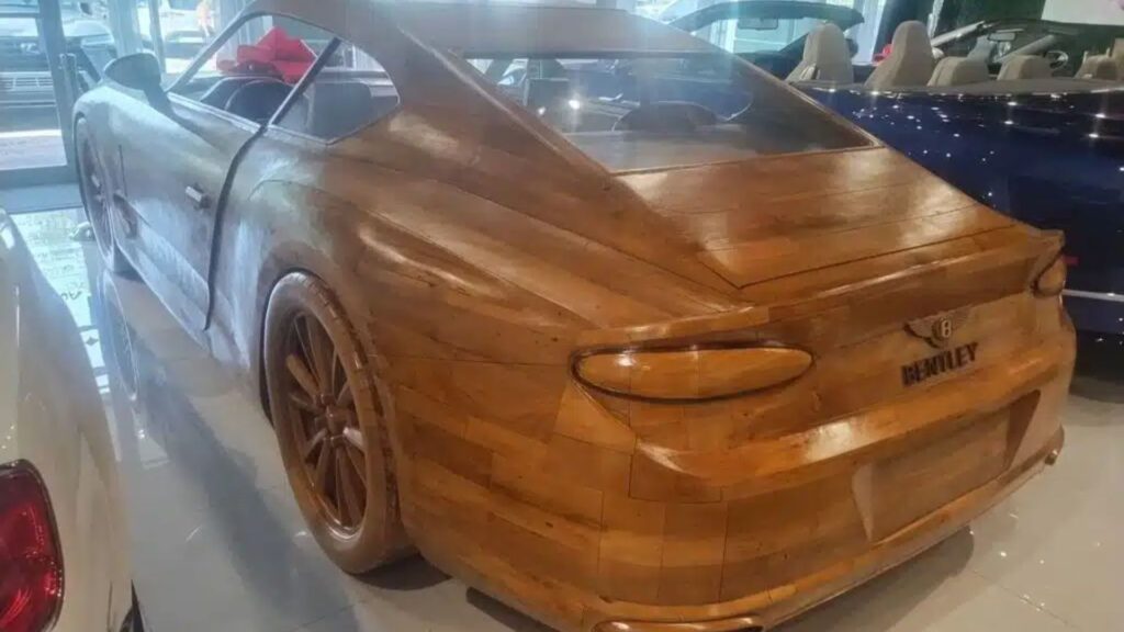 A Florida showroom recently drew headlines after unveiling a full-size Bentley Continental GT sculpture made entirely of wood, complete with a price tag just shy of $100,000.