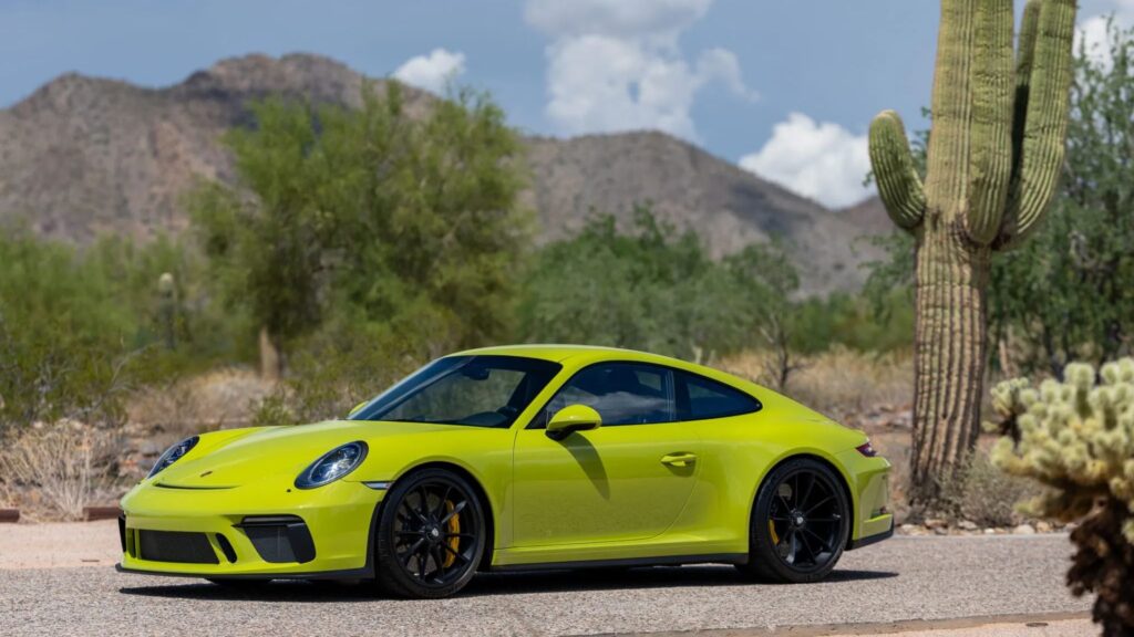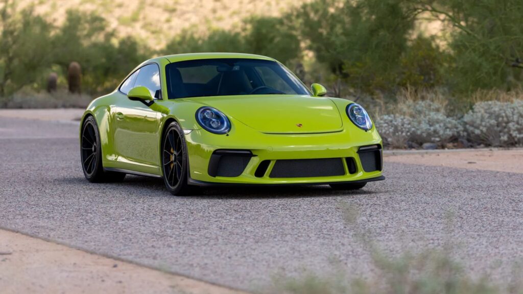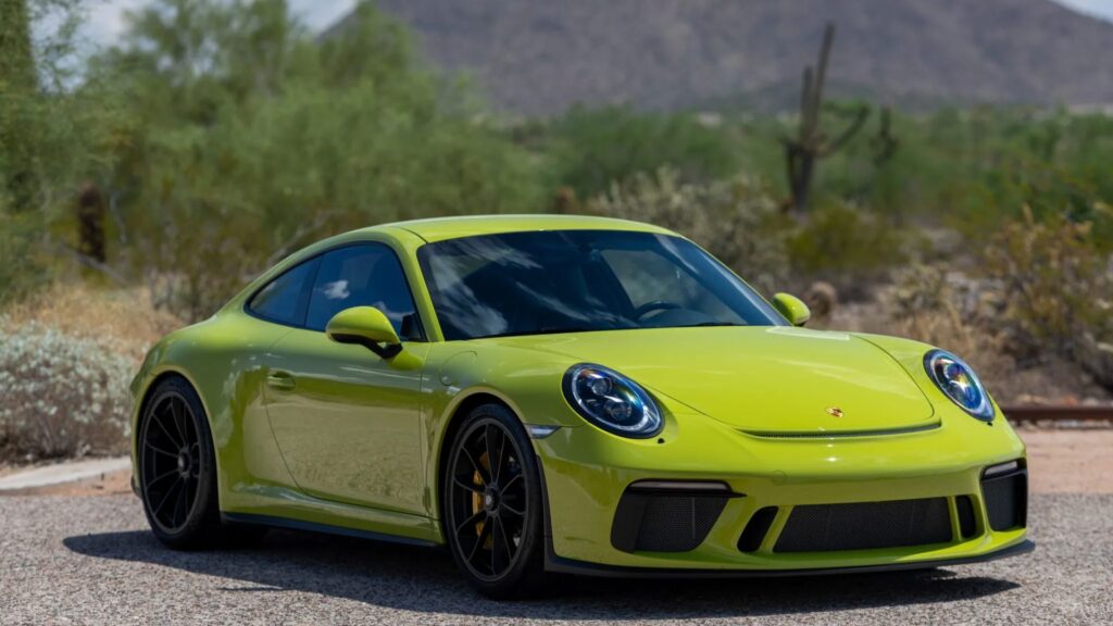 A rare 2018 Porsche 911 GT3 Touring finished in paint-to-sample Linden Green is headed to auction, offered at no reserve and drawing attention from Porsche collectors worldwide. With only 3,600 miles on the odometer, this 991.2-generation GT3 Touring blends modern track-bred performance with a purist-focused, wingless design.