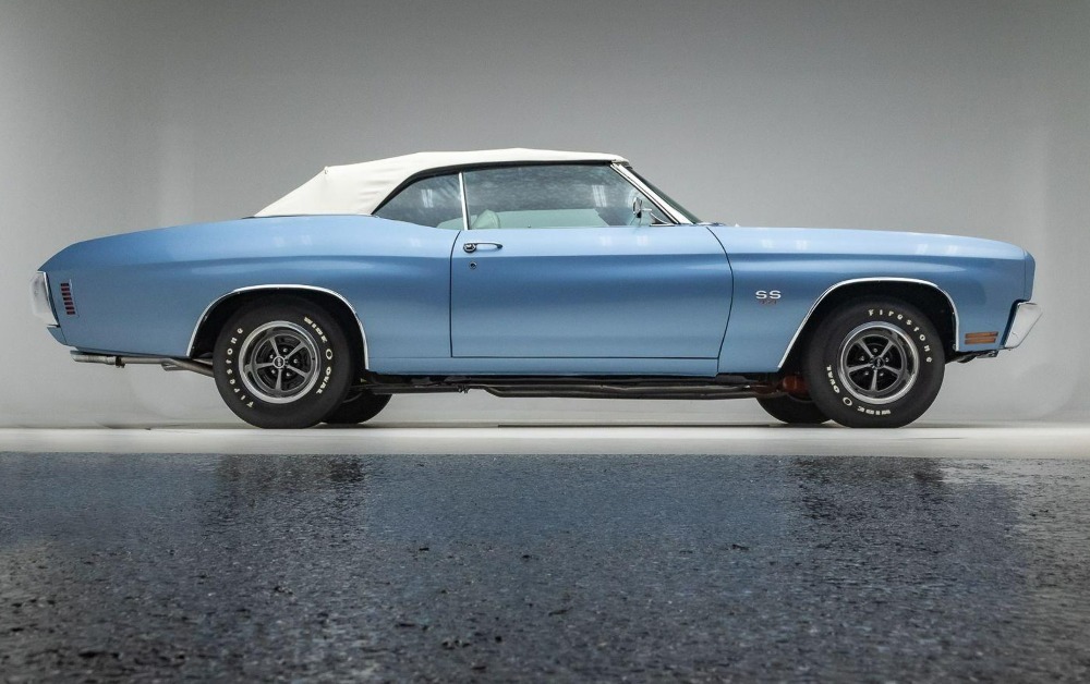 The Chevelle rides on SS wheels fitted with Firestone raised white-letter radial Wide Oval tires, completing the car’s authentic muscle car stance. With its powerful LS6 engine, manual transmission, and carefully restored condition, this convertible represents a standout example of Chevrolet’s legendary Super Sport lineup from 1970.