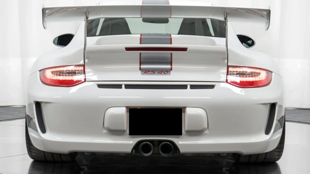 Finished in Carrara White with silver racing stripes, the RS 4.0 stands as the ultimate evolution of the 997-generation GT3 RS. It features a race-derived 4.0-liter Mezger flat-six engine producing 500 horsepower and 339 lb-ft of torque. Power is delivered exclusively to the rear wheels through a six-speed manual transmission with a limited-slip differential, reinforcing the car’s reputation as a pure driver’s machine. The engine includes forged pistons, titanium connecting rods, and an RSR-spec crankshaft, all paired with Porsche’s Active Suspension Management and adjustable coilovers for track-ready dynamics.