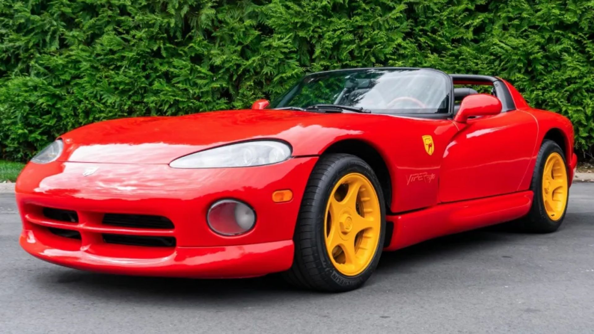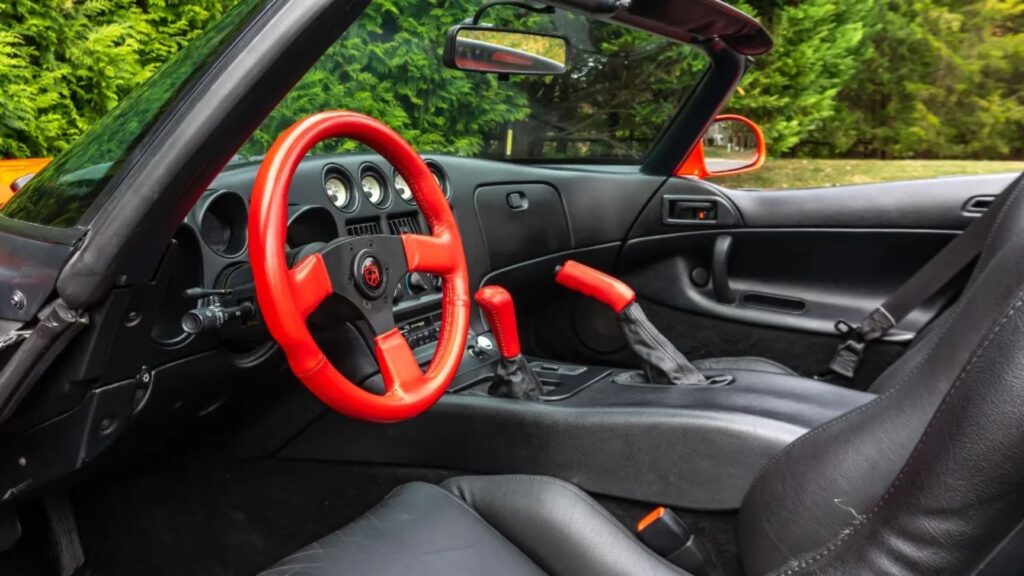 Built during the first year of the Viper’s second generation, the RT/10 was one of just 166 examples painted in Viper Red with yellow graphics and wheels. It was unapologetic, excessive, and intentionally polarizing. That was the point. Shock value sold cars in the 1990s, and Dodge leaned all the way in.