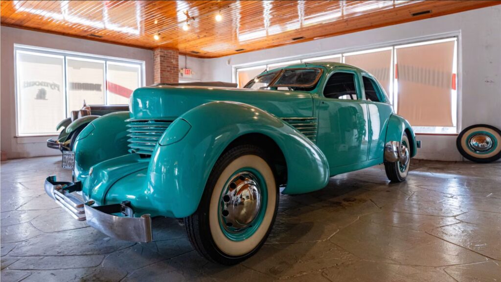 Next, the 1936 Cord Westchester captures one of the most advanced automotive designs of its time. Finished in Cool Orchard Green with a Red interior and white piping, it’s powered by a 289 CI Lycoming inline-eight with a 4-speed pre-selector manual transmission. Its forward-thinking engineering includes front-wheel drive, unit-body construction, and independent front suspension—features decades ahead of their era. The car’s signature coffin-nose grille, concealed headlights, and 125-inch wheelbase make it one of the most recognizable silhouettes in prewar American motoring.