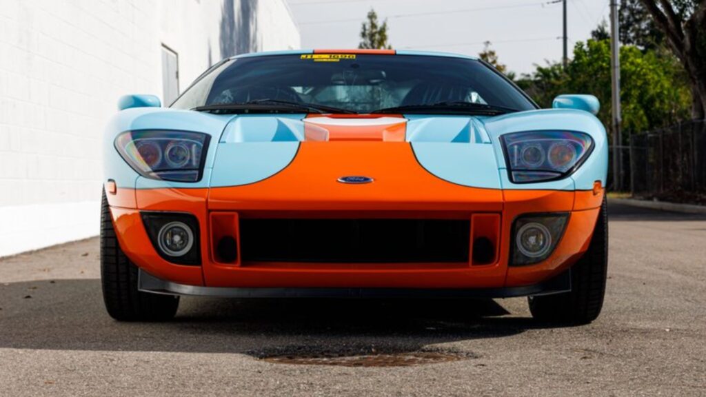 Listed as Lot ST0079.1, the car shows just 155 miles on the odometer and is being offered as a used vehicle with a Manufacturer’s Certificate of Origin. Finished in the instantly recognizable blue and orange Heritage livery, the GT pays homage to Ford’s legendary GT40 race cars that dominated international endurance racing in the 1960s.