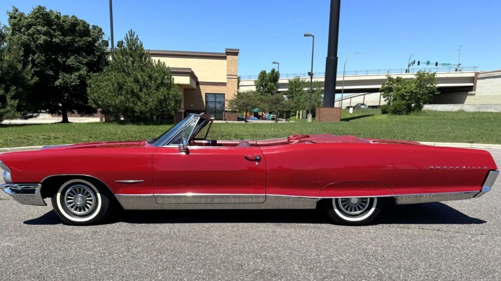 A remarkably original 1965 Pontiac Bonneville Convertible has surfaced for sale in Minnesota through CLASIQ, offering collectors a rare opportunity to own a genuine mid-’60s survivor. With just 20,534 miles showing, this red-on-red convertible remains highly original and turn-key ready.